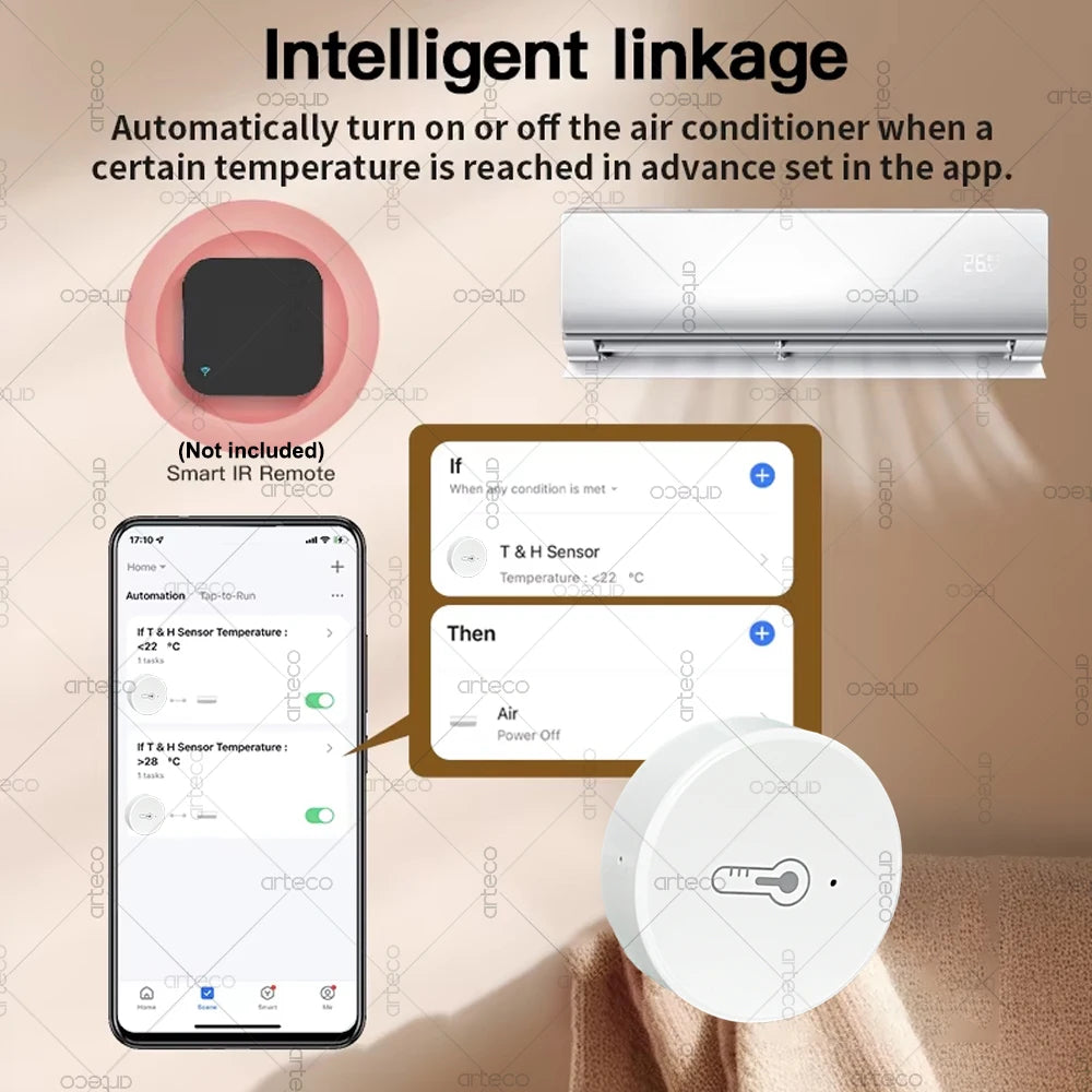 Integrate seamlessly into your smart home system with the Tuya-Compatible Climate Monitoring Sensor, supporting popular platforms like Smart Life, Tuya App, and Home Assistant (via Zigbee2MQTT). This allows you to automate fans, heaters, humidifiers, or dehumidifiers based on real-time readings for full environmental control.